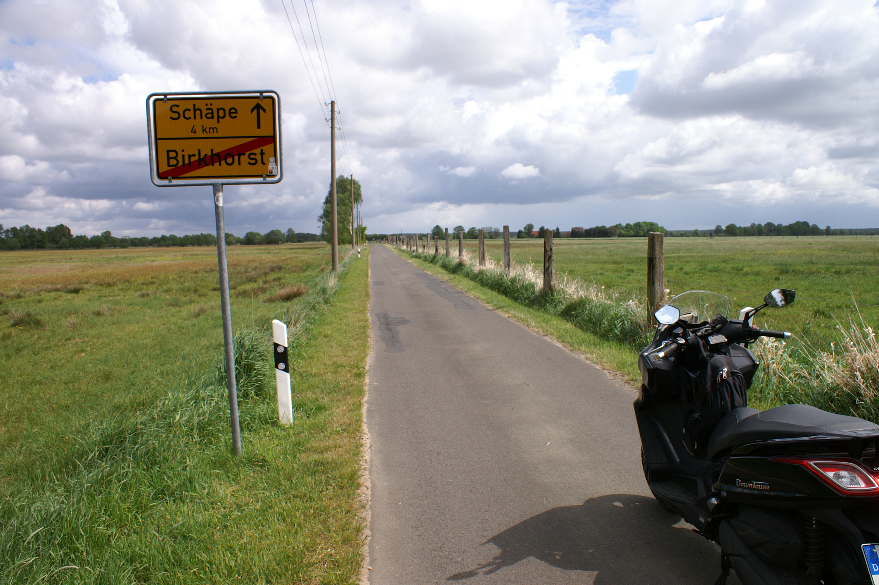 Am Treffpunkt wartete keiner. Ich hatte noch auf andere rollerfahrende Campingfreunde gehofft, gewartet. Bin in der Kombination wahrscheinlich der Einzige.
