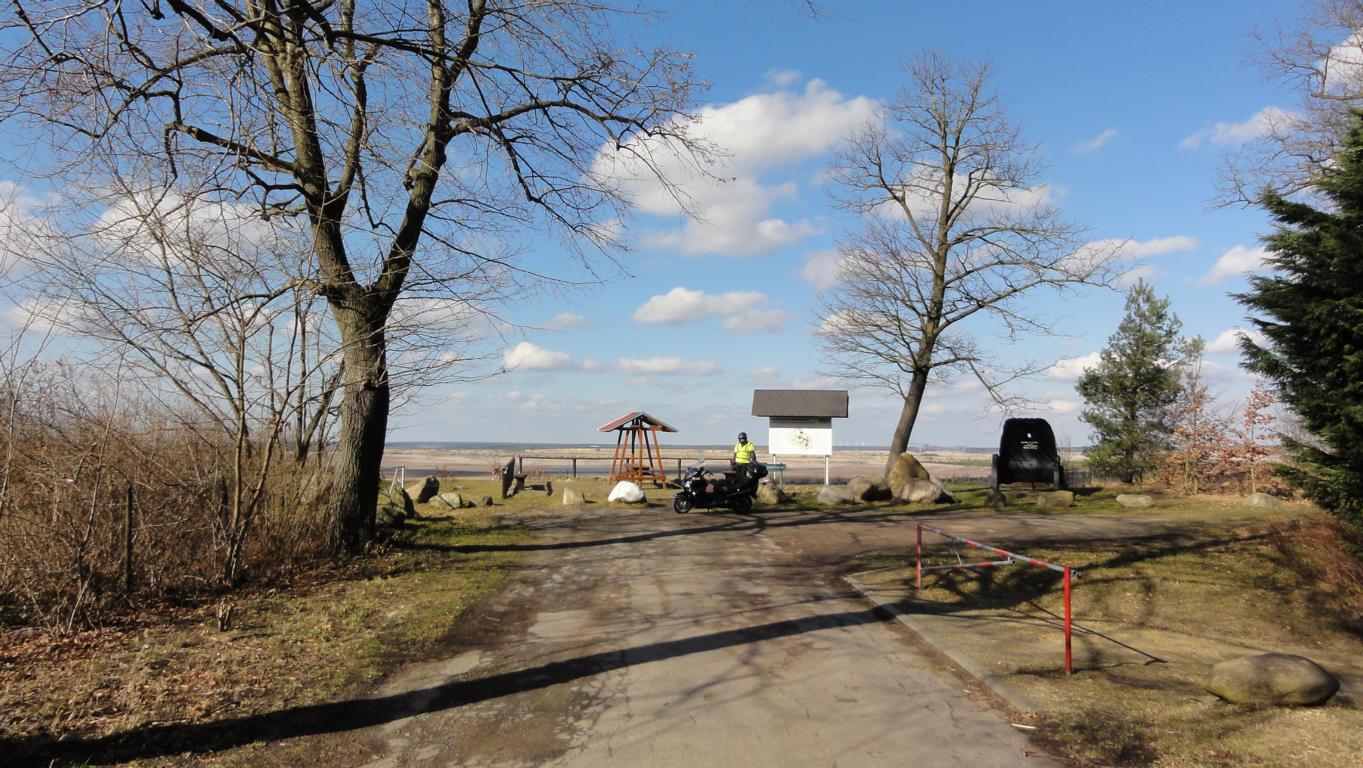 Ein passender Helm und Handschuhe waren schnell gefunden, Sturmhaube noch drunter um den Größenunterschied etwas auszugleichen – passt. Jörg fuhr mit mir schön durch einen alten Tagebau und an einem Aussichtspunkt konnte man einen 180° Blick über das Loch erhaschen. Weiter ging es zum Karneval, bzw. Eisbaden am Senftenberger See. Eis war keines da, also musste nix aufgepickert werden. Verrückte Leute die bei den Temperaturen im See baden gehen. So verrückt, dass es sogar die Lokalpresse interessiert hat.